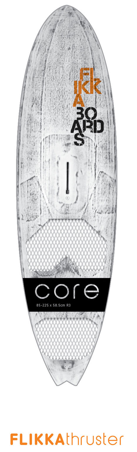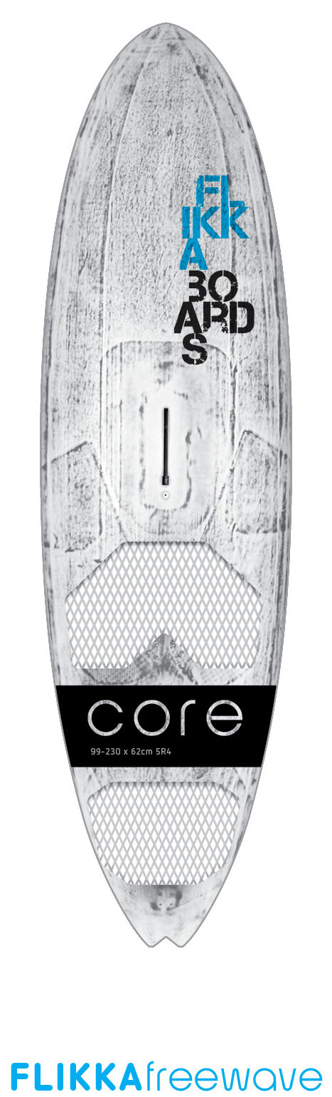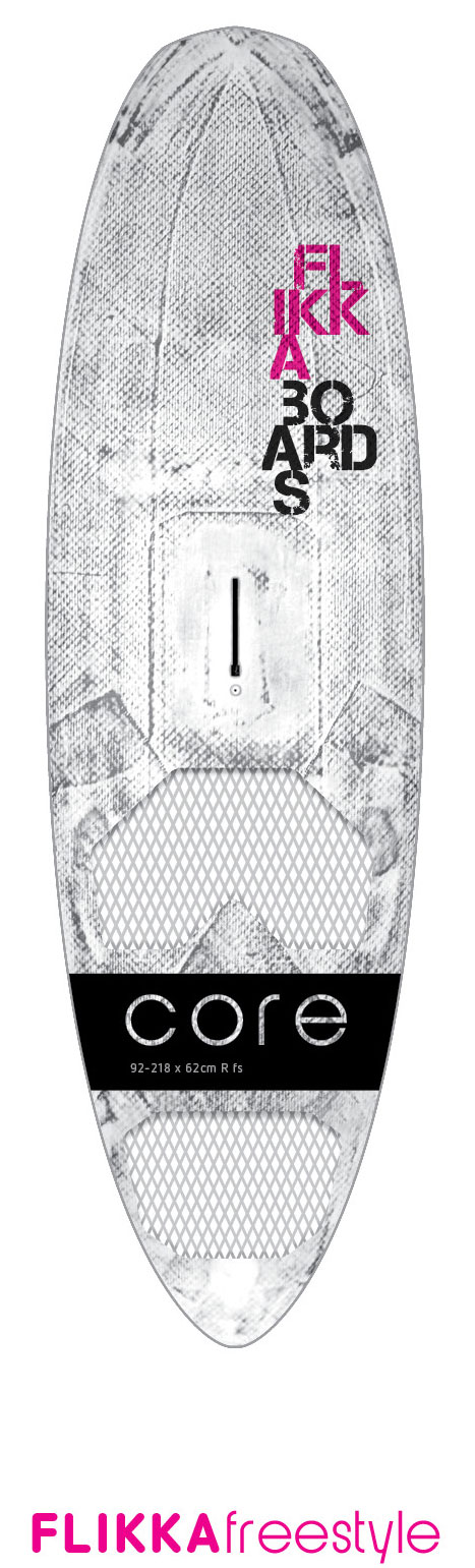 Modifications or customization of shape, design, pads, and fins are not possible in the Flikka CORE line. If you want a board that is 100% tuned to your wishes, order a Flikka full custom board.