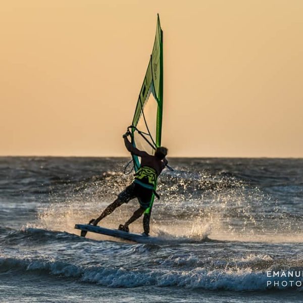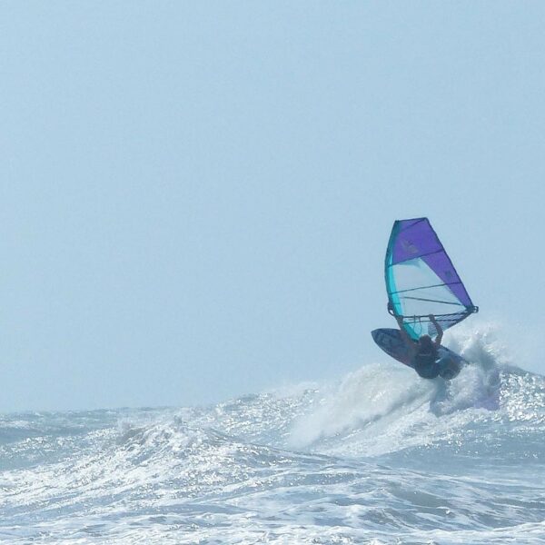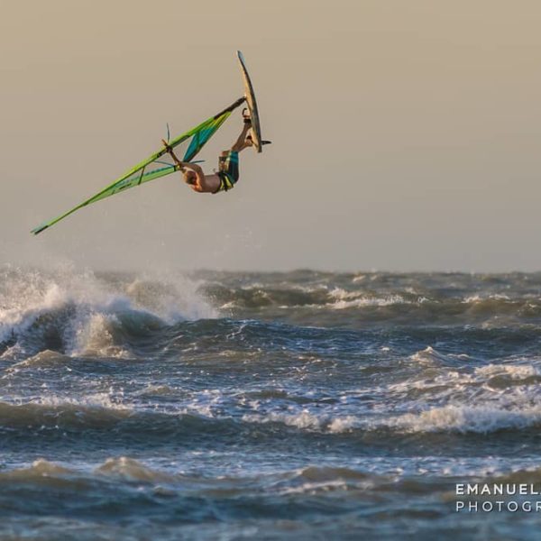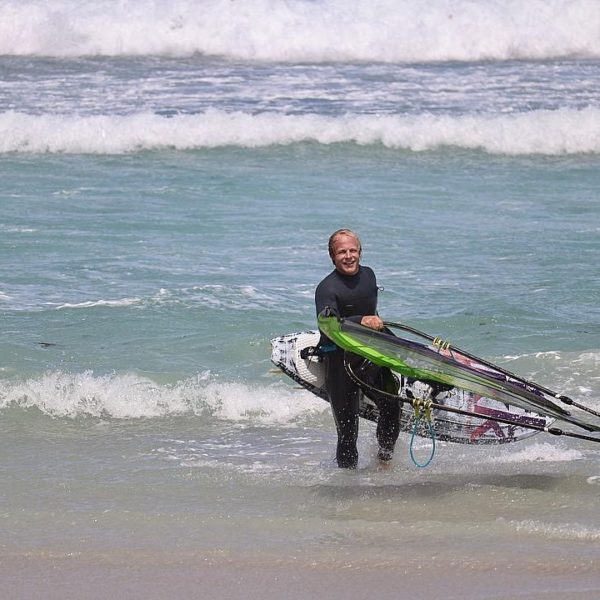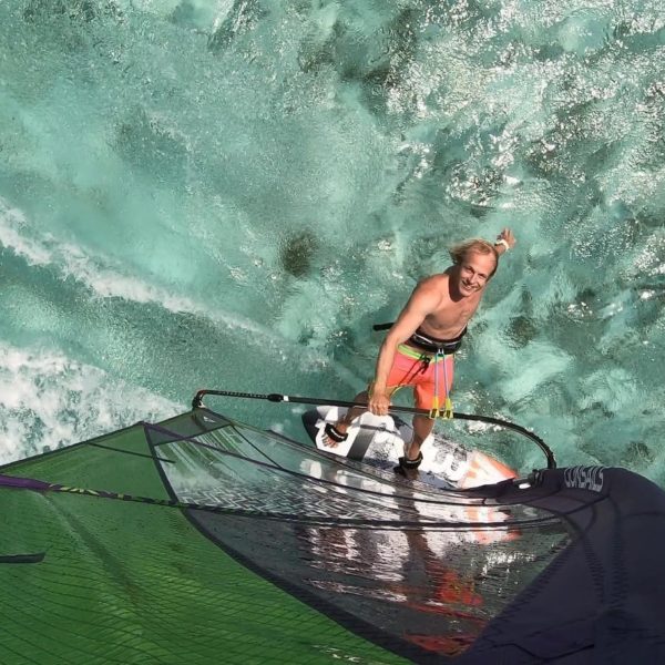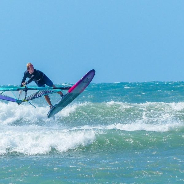 – Freestyle 92 HC (207 cm x 62 cm) with an FS rocker. I use an 19 cm fin for strong winds and sail sizes 4,0; 4,4; 4,8. In choppy conditions, I put the mast base more to the front as well as the fin in my slot box. Mostly I go middle/middle set up. The board works perfect in every condition and feels like riding a skateboard.