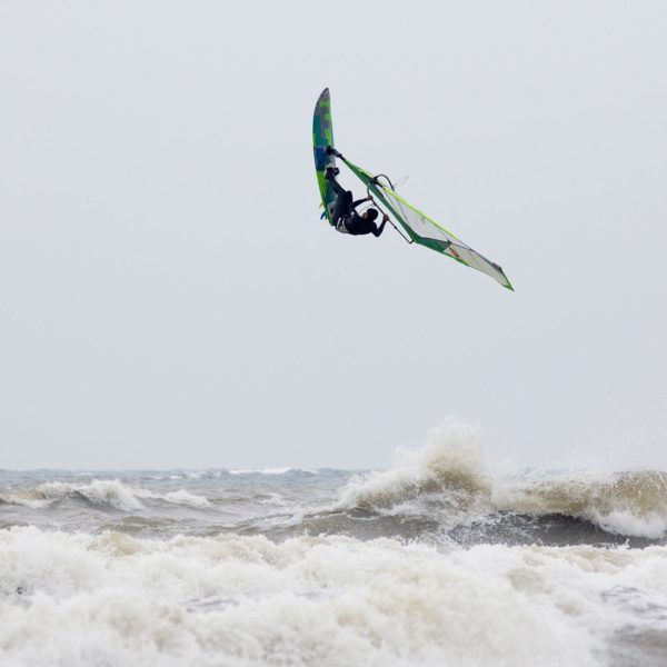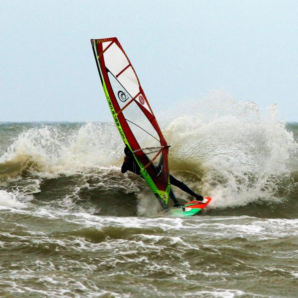Both boards (fast 2/3 rocker) are used in all conditions. DTL to full onshore using 5.5 to 3.5 sails. The 98L is truly an amazing light wind wave riding board. But I also still use the board with my 4.6 fully powered with onshore mesh and lots of currents. When really powered up I grab the 88L which is still great even in 50knot winds! Good way to get up up and away! Tried a lot in the past, now actually always making use of the same fins, Wave sideshore – Medium. Just with lots of current/onshore the 06 fins might work better. When I need more upwind ability & control I move the front fins forward and also the mast foot. Vica versa with more dtl conditions.